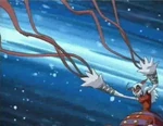 Spinnenfaden | Spider Thread | Arukenimon schleudert rote Bänder auf seinen Gegner, um diesen zu fesseln. |