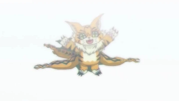 Als die Digiritter ihre Partnerdigimon in der Digiwelt wiederbegegnen, werden sie von Meikuumon beobachtet, die Meikos Namen sagt.