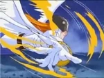 Glide | Angemon kreiert mit seinen Flügeln ein Energieschild, welches es vor gegnerischen Attacken schützen soll. | |