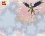 Sternenregen | Star Shower | Pegasusmon feuert Energieladungen in Form von Sternen aus seinen Flügeln auf seinen Gegner. |
