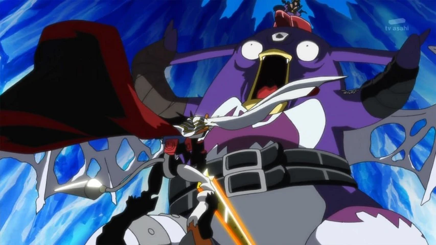 Shoutmon X4K attackiert seinen Gegner mit seinem mächtigen Schwert.