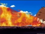 Trailmon feuert einen Feuerstrahl aus seinem Maul auf seinen Gegner. |