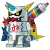 Un Digimon Cyborg de la especie Hombre Dragón cuyo cuerpo esta revestido con una armadura de goma única, con la que puede soportar cualquier ataque. Cuando los Digimon virus irrumpen en la red informática, de repente aparece de la nada y los aniquila a todos. Sin embargo, es un guerrero solitario que no esta afiliado con el grupo de la justicia, los "Cazadores de Virus", y sus verdaderos colores están envueltos en misterio. En cuanto a su armadura de goma única, no solo tiene una excelente capacidad defensiva, si no también tiene una característica que amplifica su habilidad ofensiva. Su movimiento especial es producir una una súper oscilatoria de sus dos brazos que destruye los datos de configuración, borrando completamente a cada uno de los oponentes en el espacio circundante (Garra Borradora). Si sufres este ataque, eres aniquilado sin dejar atrás un solo fragmento de datos.