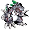 Un feroz Digimon Dragón Bestia que posee la disposición de una bestia y un dragón, es un peso pesado del que la mayoría de Digimon huye con tan solo ver su sombra. A pesar de que muestra que la ferocidad de una bestia salvaje al momento de luchar, también tiene la inteligencia de un dragón, y suele ser muy dócil. Debido a que tiene una vieja interfaz en su frente, se ha conjeturado que es la evolución de un "Digimon prototipo". Su movimiento especial es disparar una gran bola de hierro de su boca, para aplastar a su oponente (Metal Poderoso). Su movimiento especial tiene más fuerza cuando se dispara después de permanecer quieto y acumular poder, aunque también es capaz de disparar una esfera de hierro incluso cuando embiste (Bola de Cañón).[1]