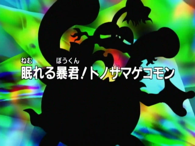 El analizador lo presenta como ShogunGekomon que lleva aquel nombre por ser el amo de los Gekomon cuya técnica especial es el puño musical que usa para dar un golpe, los Gekomon celebran su despertar pero ShogunGekomon se queja porque estaba durmiendo muy a gusto, eso provoca pánico en todos los digimons del lugar que huyen para estar a salvo, así comienza a destruir el escenario y hace su puño musical cantando la canción con la que perdió aquel concurso, pero provocando destrucción, así todos caen al mar, cuando tres rocas casi caen en Mimi, Palmon digievoluciona en Togemon para salvarla de las rocas, luego Mimi se disculpa con su digimon por lo que le dijo antes. Mimi recrimina a ShogunGekomon por la mala forma en que agradece ser despertado pero a éste no le interesa y sigue atacando, ahí aparece el apón volcán de Ikkakumon para la defensa, luego Greymon lanza su mega flama, ambos ataques sin efecto, luego de que ShogunGekomon usara su puño musical, posteriormente hace el salto de shogún, pero Greymon digievoluciona en MetalGreymon (Vacuna) siendo el primer digimon en evolucionar dos veces a la forma perfeccionada, aún cuando cuatro digimons no lo hicieron por primera vez.