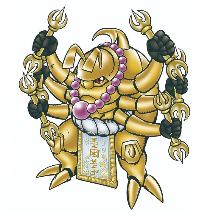 Entre Digimon recién descubiertos, es un Digimon insecto bastante único. Los detalles de cómo se convirtió en un tipo de insecto no están claros, pero tiene tanto el poder y la fuerza que poseen las hormigas a relación con su peso y la capacidad defensiva impecable de un escarabajo. Su personalidad es la de un insecto en sí, que sólo posee el instinto para la supervivencia, y, como consecuencia, no tiene ninguna inteligencia o algo similar. Se abalanza sobre Digimon de tipo virus hostiles sin piedad. Su cabeza se ha metalizado, y cuenta con la defensa de un muro de hierro. Su ataque o movimiento especial es Mega Blaster.