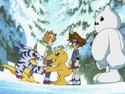 Taichi y Agumon terminan en una región cubierta de nieve. Son atacados por Frigimon, al que logran quitarle la Rueda Negra, y les ayuda a llegar a la isla donde cayeron Yamato y Gabumon. Allí, Yamato se hipotermia por salir a buscar a Takeru sin abrigo. Una vez se encuentras, aparece Mojyamon, al que deben quitar otra Rueda Negra.