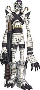 Mummymon es uno de los principales villanos de Digimon Adventure 02, y acompañante de Arukenimon, y al igual que ella, es un Digimon que pasa gran parte del tiempo disfrazado como si fuera humano, aunque dicha apariencia es difícil de creer que sea "humana".
