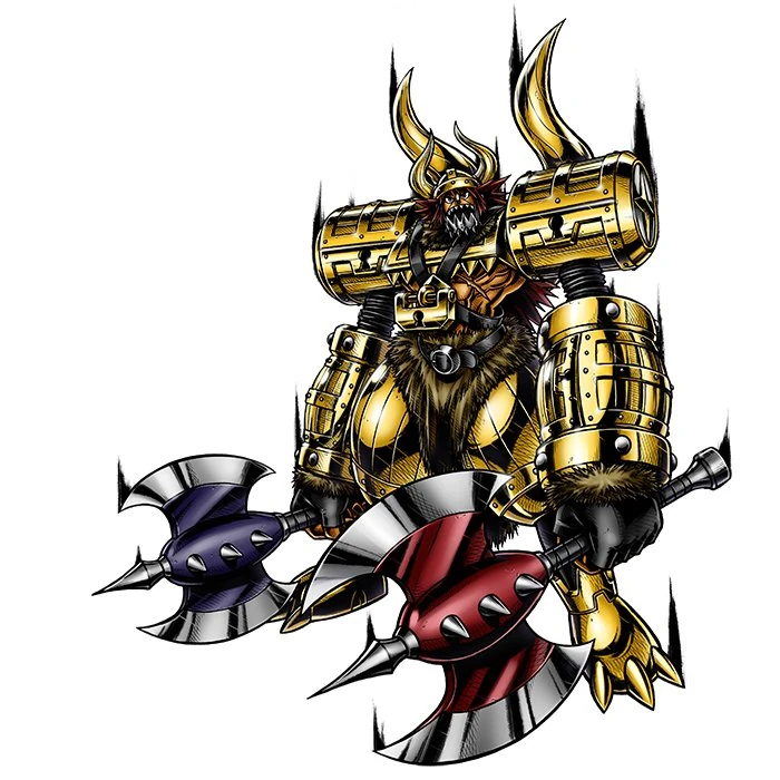 Es el General del Ejército "Ladrón de Oro" de las "Grandes Estrellas de la Muerte". Un Digimon súper peso pesado cuyo cuerpo está revestido de una armadura de acero. Con su ejército, que lleva a cabo atrocidades y saqueos a sus límites con Digimon Animales Acuáticos y Animales del Mar, saquea tesoros donde quiera que viaja a través del océano. Tiene una debilidad por los tesoros de oro y plata, por lo que sus tesoros recogidos se convierten en la dieta entera de Olegmon, y aumenta la resistencia de su armadura si come lo suficiente. Olegmon cuenta con la fuerza sobrehumana más entre los otros generales, fácilmente blandiendo su súper peso pesado par de hachas "Doble Tomahawk", y sin esfuerzo las lanza con su "Boomerang de Doble Tomahawk". Si un oponente sufre su "Vuffet Vikingo", las mueve verticalmente hacia abajo una y otra vez, cortando en pedazos en un abrir y cerrar de ojos. Además, Olegmon mantiene un par de sombras gigantescas llamada "Jörmungandr" en su hombro derecho y "Surtr" en su hombro izquierdo. Ambos se convierten en sombras diabólicas que si un oponente es reconocido, "Jörmungandr" en su hombro izquierdo se los lleva a "Jötunheimr", que se dice que es el fin del mundo, con su "Era de los Descubrimientos". "Surtr", en su hombro derecho, pide los deseos del oponente y hace que les conceda con "Los Sueños Se Vuelven Realidad", pero evita conceder el deseo utilizando una interpretación conveniente de Olegmon, y si por el contrario el oponente se niega obstinadamente al deseo, seguirá repartiendo ataques.[1]