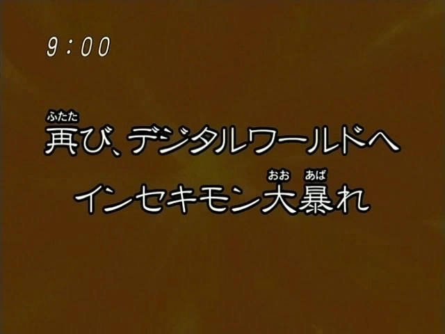 Proposition de paix (再び、デジタルワールドへ インセキモン大暴れ, Futatabi, Dejitaru Waarudo he Insekimon Ooabare) est le 23ème épisode de Digimon Savers.
