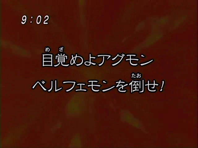 Le retour d'un ami (目覚めよアグモン ベルフェモンを倒せ!, Mezame yo Agumon - Berufemon o Taose!) est le 37ème épisode de Digimon Savers.