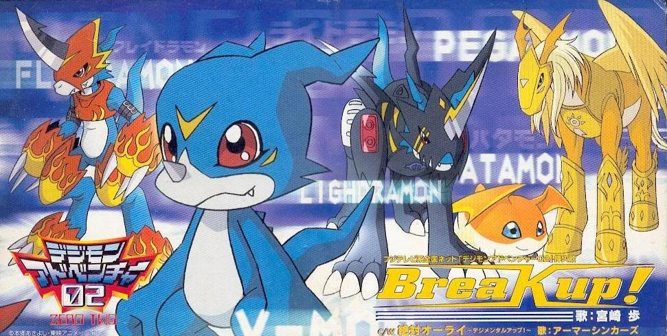 Break up! è la canzone di sottofondo dell'Armor Digievoluzione in Digimon Adventure 02 ed è cantata da Ayumi Miyazaki. Nell'adattamento italiano viene utilizzata la sua versione strumentale.