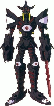 Duskmon[]![]() Koichi assume questa forma grazie al Digispirit Umano delle Tenebre corrotto da Kerpymon. Finché Koichi è sotto l'influenza di Kerpymon rimane stabile in questa forma, senza tornare mai umano.