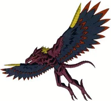 Velgemon[]![]() Koichi assume questa forma grazie al Digispirit Animale delle Tenebre corrotto da Kerpymon. La sua prima trasformazione avviene quando Kerpymon gli concede anche quel Digispirit ordinandogli di uccidere Koji.