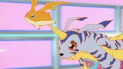 Akcja filmu rozgrywa się w trakcie letnich wakacji. Kiedy Taichi próbował wysłać maila z przeprosinami do Sory, Koushiro odkrył DigiTamę formujące się w internecie. Z jaja wkrótce wykluł się Digimon, Kuramon. Przerażony Koushiro pobiegł do domu Taichiego. Chłopak wyjaśnił, że jego kolega z Los Angeles dokonał analizy skorupki jajka tego Digimona i odkrył, że powstało z dużej liczby błędów komputerowych. Wkrótce Digimon ewoluuwał na wyższy poziom. Koushiro zorientował się, że ta tajemnicza istota rośnie poprzez zjadanie informacji i może zagrażać komputerom na całym świecie. Niewiele później system odpowiadający za naliczanie cen został zhakowany. Chłopcy postanowili przejść na komputer ojca Taichiego, który był podłączony do sieci. Kiedy włączyli komputer, Digimon był już na poziomie Dziecka. Po chwili Gennai i Digimony wybrańców skontaktowali się z nimi przez laptopa Koushiro. Digimony ostrzegły ich przed Keramonem i postanawili pomóc im w walce. Z pomocą Gennaia, Agumon i Tentomon trafili do sieci. W trakcie transferu danych, Taichi próbował skontaktować się pozostałymi, lecz wszyscy byli zajęci - Jo miał egzaminy, Yamato i Takeru byli u babci w Shimane, Mimi na Hawajach, Hikari na przyjęciu urodzinowym, natomiast Sora obrażona na Taichiego nie chciała odebrać telefonu. Wkrótce Keramon zhakował system wesołego miasteczka, przyśpieszając diabelski młyn do niewiarygodnej prędkości. Kiedy chłopcy wrócili do komputera, transfer został zakończony. Digimony zaatakowały Keramona z zaskoczenia, na co Digimon odpowiedział im mailem "pobawimy się?". Agumon i Tentomon ewoluowały w swoje Dorosłe formy i zaatakowali wroga, lecz Digimon ponownie dokonał ewolucji, tym razem w Infermona. Greymon i Kabuterimon próbowali go pokonać, lecz bez rezultatu. Wtedy Koushiro zorientował się, że ich wróg ewoluował dwukrotnie i teraz jest na poziomie Perfekt. Chcąc wyrównań szanse, obydwa Digimony również chiały ewoluować w swoje Perfekcyjne formy. Niestety, przeciwnik użył podstępu i zaatakował ich w trakcie ewolucji, zdobywając czas na ucieczkę. Wtedy Koushiro dostał maile od różnych dzieci. Jak się okazało, dzieci ze wszystkich stron świata oglądały tę walkę w internecie. Przeglądając wiadomości, Koushiro znalazł maila od Infermona - był teraz w NTT, sieci telekomunikacyjnej. Taichi ponownie próbował skontaktować się z pozostałymi, ale korzystając z ataku DoS, Digimon zadzwonił na wszystkie telefony w Tokio, w efekcie przeciążając linie telefoniczne i uniemożliwiając jakikolwiek kontakt przez telefon oraz odłączając bohaterów od sieci. Załamany Taichi usłyszał w telewizji o zapasowym systemie wiadomości głosowych i zostawił wszystkim wybrańcom prośbę o szybki kontakt. Niewiele później, Koushiro przyniósł telefon satelitarny, pozwalając na kontakt z ominięciem sieci NTT, niestety wyłączając z tego lokalne połączenia telefoniczne. Koushiro zasugerował Taichiemu, żeby sprawdził pocztę głosową - na kontakt odpowiedzili Yamato i Takeru. Używając kolejnych wiadomości głosowych bohaterowie powiedzieli im, żeby szybko znaleźli komputer. Po długich poszukiwaniach, w końcu udaje im się. W międzyczasie Taichi i Koushiro odzyskali łączność z siecią i odnaleźli Infermona w Ameryce, gdzie zaczął hakować coraz większą liczbę systemów komputerowych. Niewiele później, Yamato i Takeru skontaktowali się z przyjaciółmi i do walki z wrogiem dołączyli Gabumon i Patamon. Agumon i Gabumon ewoluowały na poziom Ostateczny i zaatakowali wroga. Gdy Patamon również próbował ewoluować, Infermon zmienił się w Diablomona i szybko unieszkodliwił zarówno jego jak i Tentomona. W trakcie walki, WarGreymon stracił swoje obydwie rękawice. Kiedy Koushiro musiał na chwilę wyjść do toalety, Taichi w ferworze walki uderzył w komputer zawieszając go, przez co WarGreymon zamarzł. Gdy Koushiro wrócił i zresetował system, okazało się, że WarGreymon został ciężko ranny. Wtedy Diablomon postanowił zagrać w tytułową wojenną grę. W tum celu shakował systemy Pentagonu i wystrzelił nieuzbrojony pocisk nuklearny skierowany na bohaterów. Potem wysłał maila "kto z nas ma zegar?" i zaczął się multiplikować. Jak się okazało, do uzbrojenia pocisku zostało 10 minut i tylko jedna kopia ma w sobie zegar. Kiedy bohaterowie zorientowali się o planie Diablomona z maila od studenta z Tajwanu, postanawili go za wszelką cenę powstrzymać. Jedynym wyjściem było pokonanie wszystkich kopii Digimona - jedna za drugą. Gdy WarGreymon i MetalGarurumon trafili na miejsce, kopii Diablomona było już 16000 i liczba wciąż się powiększała. Digimony próbowały ominąć jego pociski, ale przez gigantyczną liczbę maili przypływających z całego świata sbyli mocno spowolnieni i zostali ostrzelani. Taichi i Yamato w jakiś posób dostali się do sieci, do swoich Digimonów. Wtedy w połączeniu ze wszystkimi wiadomościami od dzieci z całego świata, obydwa Digimony scaliły się w Omegamona. Nowy Digimon szybko wyeliminował gigantyczną liczbę klonów. Gdy został tylko jeden, do uzbrojenia głowicy została już tylko minuta. Niestety, Diablomon był zbyt szybki i Omegamon nie mógł w niego wycelować. Wtedy Koushiro postanwił przekierować wszystkie maile na adres Diablomona, zawieszając go. W ostatniej sekundzie, Omegamon przebił go swoim mieczem, w efekcie czego nieaktywowana rakieta wpadła do wody, a wysłany przez Taichiego mail z przeprosinami wreszcie dotarł do Sory. W napisach końcowych okazało się, że dziewczyna przeprosiła się z Taichim, zakładając spinkę, o którą się pokłócili.
