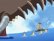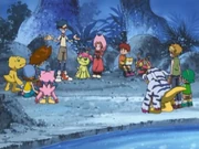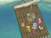 Następnego dnia budują tratwę, a z pomocą przychodzą im starzy przyjaciele i w końcu wyruszają w morze. Po drodze jednak zostają zaatakowani przez Whamona i wchłonięci do jego środka, gdzie odkrywają czarną zębatkę. DigiWybrańcy za pomocą DigiPilotów eliminują ją i ratują Whamona, a ten zgadza się zabrać ich na Serwer, a także w głąb oceanu po medaliony.