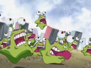 Chcąc, nie chcąc zostali zmuszeni do ucieczki przed nimi aż w końcu wybiegli na powierzchnię. Numemony nie poszły dalej, bo nie lubiły światła słonecznego jednak nie na długo. Po chwili słońce skryło się za chmurami, a owe Digimony powróciły do pościgu i rozdzieliły bohaterów. W pewnym momencie Mimi i Palmon mają dosyć ucieczki. Palmon chce walczyć i chronić Mimi, ale zanim wykonuje jakikolwiek atak - Numemon ucieka. Obydwie odwracają się i zauważają Monzaemona, który miał być miłym Digimonem, jednak chciał je złapać.