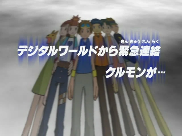 Jap. "Didžital vrld Kara no Kinkju Renaku! Kulumon ga..." (デジタルワールドからの緊急連絡 ! クルモンが・・・ - hitna poruka iz digitalnog sveta Kulumon je...).