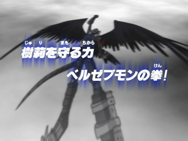 Jap. "Đuri o Mamoru Čikara, Bilzibmon no Ken" (樹莉を守る力、ベルゼブモンの拳 - moć da se spase Đuri Bilzibmonova pesnica).
