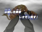 Jap. "Kokoro Jasašiki! Juša Liomon Šisu" (心優しき勇者レオモン死す! - dobrodušni heroj Liomon umire).
