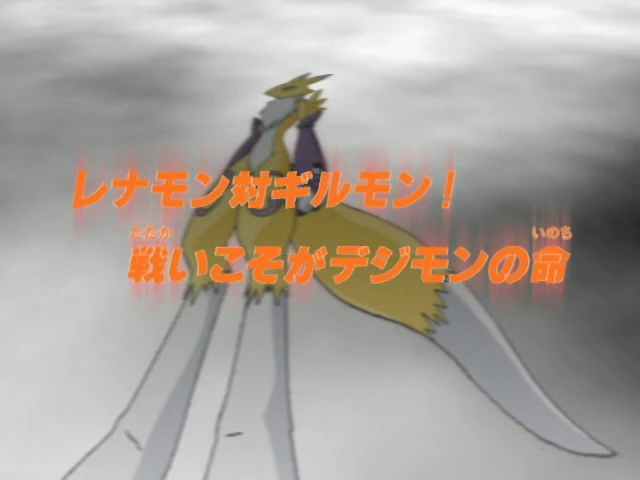 Jap. "Renamon cui Gilmon! Tatakai Kosoga Didžimon no Inoči" (レナモン対ギルモン!戦いこそがデジモンの命 - Renamon protiv Gilmona borba je život digimona).