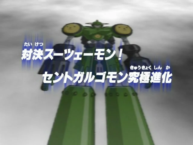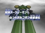 Jap. "Taikecu Žucjamon! SentGalgomon Kjukjoku Šinka" (対決スーツェーモン! セントガルゴモン究極進化 - borba sa Žucjamonom SentGalgomonova mega evolucija).