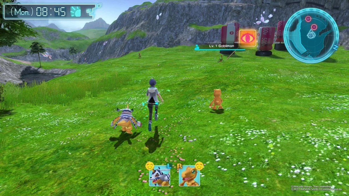 - ในภาพเราจะเห็นตำแหน่งของทิศทางของแผนที่ ตำแหน่งดิจิมอนศัตรูที่ยืนอยู่ หากศัตรูมีสัญญาลักษณ์เป็นลูกตา แสดงว่ากำลังจ้องมองและวิเคราะเราว่าดิจิมอนเราอ่อนแอหรือไม่ หากอ่อนแอหรือบางตัวจะเป็นพวกก้าวร้าว มันจะวิ่งเข้ามาหาเราเพื่อต่อสู้กับเรา แต่หากมันยังจ้องเราอยู่และเดินถอยออกมาแสดงว่าดิจิอมนของเราแข็งแกร่งกว่าศัตรูแล้ว ดิจิมอนของเราที่เลี้ยงไว้ในร่างเจริญวัยและเต็มวัน มักจะคึกคะนองเป็นอย่างมากเพราะมันยังมีความรู้สึกในความเป็นเด็กหรือวัยรุ่น จะไม่เหมือนภาคคลาสสิกที่ดิจิมอนเรามักจะเดินตามหรือเวลาเราอยู่นิ่งๆ จะร้องไปมา แต่หากอารมเสียดิจิมอนของเราก้าวร้าวโวยวายใส่คู่ดิจิมอนอีกตัวของเรา