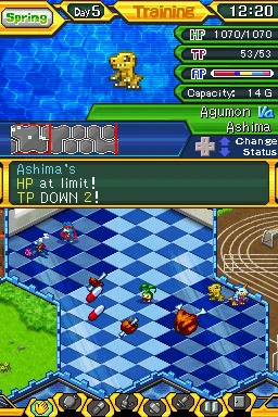 - โซนเทนนิ่งดิจิมอน จะฝึกฝนดิจิมอนเพื่อเพิ่มสเตตัสให้ดิจิมอนในการต่อสู้ หลักในการฝึกฝนของดิจิมอนนั้น เราจะต้องลากดิจิมอนเข้าไปอยู่ในโซน ซึ่งโซนจะแยกออกมาตามสเตตัสดังนี้