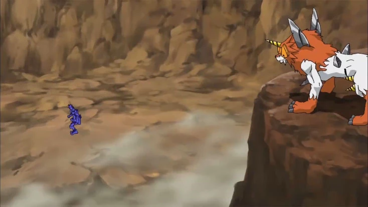 - โดรูรูมอน หลังจากปรากฏตัวพร้อมกับคิวมอนอีกครั้งได้เห็นบลูเมลามอนทำให้นึกถึงดีตทันที่ (อะไรหนอ) และถูกไทกิชวนเข้ากลุ่มครอสฮาร์ต แต่ก็เดินหนีพร้อมกับคิวมอนที่ลงความเห็นที่จะเดินทางพร้อมไทกิกับเพื่อนๆ แต่ระหว่างทางได้พบกับเชลยที่ถูกทิ้งอยู่กลางทางทำให้รู้ว่าพ่อแม่ของคิวมอนยังอยู่ที่แม็กม่า โซน จนต้องกลับไปช่วยพวกไทกิอีกครั้ง และช่วยเหล่าเชลยออกมา และก็รวมร่างกับเชาท์มอนชนะเอเชียนต์ โวเคนมอน