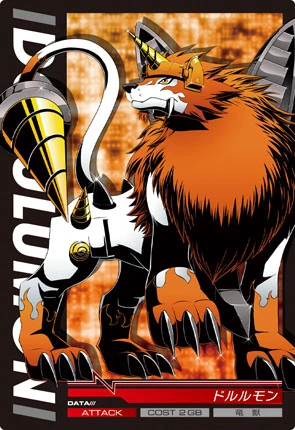 - โดรูรูมอน เป็นดิจิมอนสุนัขขนสีส้มที่มีรูปร่างประหลาด มีสว่านที่หัวเหมือนยูนิคอนและหางเป็นสว่านเป็นการโจมตีได้หลายรูปแบบ โดรูรูมอน มีนิสัยเคร็งครัดและจับความรู้สึกได้ง่าย โดรูรูมอน ถ้าเกิดถูกใครหักหลังมันจะไม่เคยพูดเรื่องที่เคยโดนหักหลังอีก และถ้าใครจะให้ความช่วยเหลือหรือติดตามไปด้วย มันก็จะยอมตกลง แต่ก่อนหน้านั้นต้องตี้อจนกว่าจะยอม สังกัตธาตุ:ไม่มี,ลม ท่าไม้ตาย: Drill Buster เป็นการยิงกระสุนสว่านที่อยู่ที่หน้าผากยิงใส่ศัตรู และ Dorulu Tornado เป็นการสร้างพายุจากสว่านที่อยู่ตรงหางเป็นพายุหมุนยักษ์
