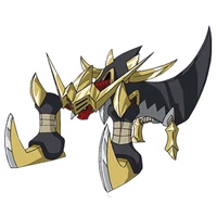 Darkest AxeKnightmon is the form of AxeKnightmon after absorbing his brother Bagramon. He gains Bagramon's right arm and leg.