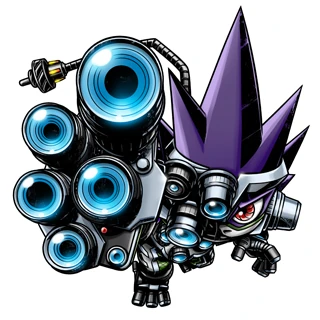 Cameramon is a cybernetic Appmon covered in camera lenses. Its fingers are camera lenses, and it has them on its torso and covering its right eye. Like most Appmon, it has two cables on its back to allow Applink.