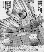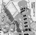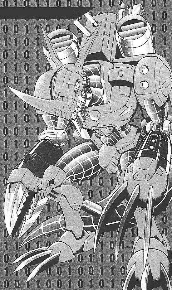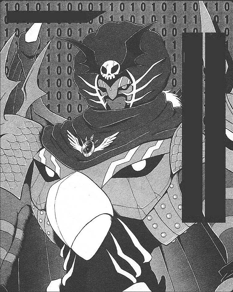 When the Tamers break into System World, he confronts Yuu and MachGaogamon, managing to keep an upper hand until MachGaogamon uses soundwaves to get past his defense. He managed to infect MachGaogamon with a virus, but is defeated when MachGaogamon uses his own weapon to get past his armor. The blow incapacitates him for the rest of the series.