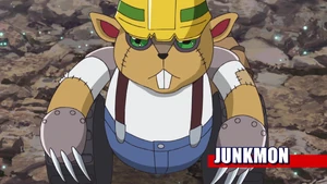 Later, Junkmon explains to Sora that protecting his workers is a double-edged sword as they protect him in return, building trust between them. Realizing her error, Sora prepares to go apologize to Biyomon, but the volcano suddenly erupts, forcing Junkmon to raise the alarm to evacuate as lava begins to emerge from the crater, warning Sora that when dealing with nature, your life's safety comes first. Tai and MetalGreymon move to aid in evacuating those Digimon who couldn't get away in time, but Junkmon and Sora are wounded by a lava bomb. Luckily, Biyomon reunites with Sora, apologizing for what she said earlier, and with amends made, Birdramon leaves Junkmon with Tai and MetalGreymon, and Sora orders everyone to evacuate to the ocean shore while she and Garudamon deal with the lava, but are soon engulfed by it.