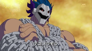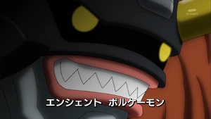 At the Bagra Army's Magma Zone branch base, SkullMeramon reports to his superior, AncientVolcanomon, about the Fusion Fighters. After being calmed down by a team of Frigimons after literally blowing his top, AncientVolcanomon demands the Fusion Fighters' capture. By that time, as Mikey explains to Shoutmon that he feels Dorulumon should be with them due to the dream, the group stumble on a ruin where several Digimon are being forced to find the Code Crown. Mikey opts to free the Digimon, as Dorulumon explains finding the Code Crown is of no concern to him. However, making their move after sunset, the Fusion Fighters' infiltration ends up playing into SkullMeramon's trap, with Mikey losing his Fusion Loader and Angie recovering it before being cornered. Luckily, having heard from a discarded Bearmon that Cutemon's parents are in the dungeon, Dorulumon returns to offer a helping hand. Mikey then forms Shoutmon X3 and defeats SkullMeramon with Cutemon's support. However, the victory is short-lived as AncientVolcanomon comes in, furious over his forces defeated.