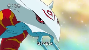 • The reason for Apollomon's bandaged arm is changed. In the Japanese version, Apollomon intentionally harms himself whenever he has to harm a citizen, both as an act of penance and a means of limiting his power. In the American English dub, it is altered to be that Apollomon does not heal his battle wounds as long as he has to harm his citizens, removing the active self-harm aspect.