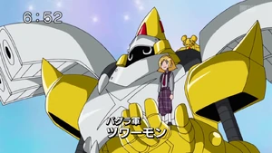 The Fusion Fighters United Army reaches the final land, Bright Land, covered in bright lights that do nothing to hide its nature as a desolate wasteland. Sparrowmon attempts to scout a tower, the only structure in the area, but is rebuffed by an invisible force each time. She also brings news of the Dark General's cruelty: Digimon bound by iron spikes and forced to suffer under the unrelenting light to harvest their negative energy. The United Army swears to take them down, and Sethmon and Marusumon, the Dark General Apollomon's captains, respond by leading an attack. The United Army rebuffs it, so Sethmon calls Apollomon to aid him. Apollomon personally appears and digifuses Sethmon with the grunt troops, so Mikey and Christopher respond with Shoutmon DX. Shoutmon DX surpasses Sethmon's new form, Sethmon Wild Mode, so Apollomon calls off the attack and agrees to meet with them, should they climb his tower. Marusumon explains that the tower connects the heavens with the underground, and so all who wish to speak with him need to climb the tower.