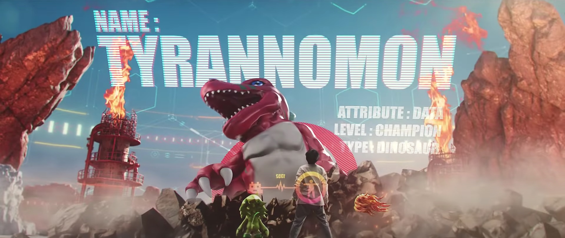 Upon arrival, the duo come across a Digi-Egg, which hatches into DemiMeramon after the Protagonist touches it. The trio are then transported to a wasteland. As they travel around the wasteland they fight multiple Digimon, including Meramon and Birdramon and then complete a mission to destroy a giant rock, after which they are attacked by a Tyrannomon. Having defeated a lot of Digimon and completed various missions, Pulsemon is now able to digivolve and digivolves to Bulkmon to fight Tyrannomon. After a hard fought battle, Bulkmon defeats Tyrannomon and the trio celebrate their victory together.