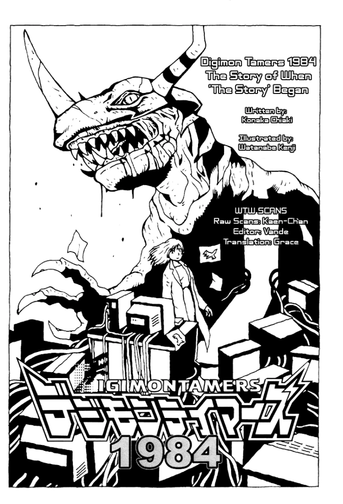 Digimon Tamers 1984 is a short story written by Chiaki J. Konaka, the screenwriter for Digimon Tamers, and illustrated by Kenji Watanabe. It was published in Volume 5 of SF Japan in 2002.