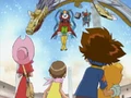 - When the group run away from MetalSeadramon, one frame shows Biyomon's legs colored pink instead of yellow.