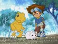 - When Tai and T.K. see DemiDevimon return, Tai's headband is colored a lighter tone of blue.