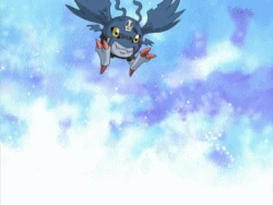 - In a second shot of DemiDevimon using his attack, the first two frames of him folding his wings show the lower part of his body being the same color as his upper body.