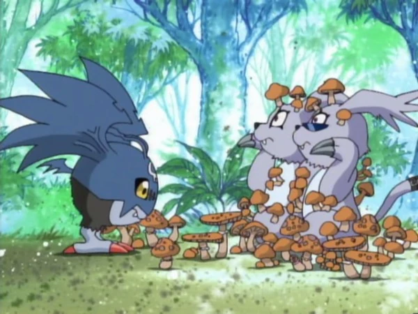 After Tokomon finishes updating Tai and Agumon, they head for the amusement park, where they find T.K. who seemed to be upset about losing his partner. T.K. is overjoyed to see Tai again along with his Digimon partner, but they start to fight again. When Tai tries to comfort T.K., the young boy asks to be Tai's little brother instead of Matt's, because Matt abandoned him. DemiDevimon soon turns up with some "Mushrooms of Forgetfulness", which he got from some Gazimon. He plans to have the group eat them, and they seemed thrilled that he has brought them food, seeing as they are quite hungry. Tai cooks the Mushrooms and when Agumon goes to the washroom and is warned by an unseen Sora, hiding in the bushes, that the Mushrooms will cause them to lose their memories. Agumon arrives with the news of the poisoned mushrooms just in time to save Tai and T.K from eating them. DemiDevimon's plan is found out, and Tokomon and T.K. repair their friendship. Tokomon then digivolves into Patamon to teach the deceiving Digimon a lesson and after a battle through the amusement park, DemiDevimon is defeated. Tai, T.K. and their Digimon partners then set off to find the rest of their team.