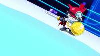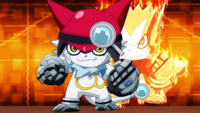 On February 11, after seeing how powerful Haru and DoGatchmon's bond was, Timemon shows up in time to help the two eradicate an attacking army of Virusmon that had already infected Musimon. He then gives his chip to Haru, enabling him and DoGatchmon to combine into Globemon, who is able to search for and wipe out all existing Virusmon roaming around Earth. The Net Ocean is in a Big Pinch! The "Time" has Come, Ultimate App Fusion!