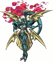 Magnadramon is Gatomon's primary Mega form, a serpentine dragon with ten wings, a lion-like muzzle and two horns. The name "Magnadramon" is derived from the words Magna meaning "large" or "great" and Dra for "dragon".