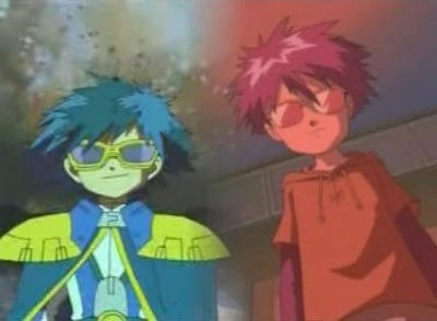 Sam (right) and the Digimon Emperor (left).