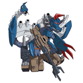 DeckerGreymon is the DigiFuse of MetalGreymon and Deckerdramon. MetalGreymon adds Deckerdramon's weaponry to his already considerable firepower.