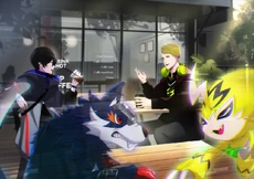 Eiji Nagasumi and Leon Alexander, having recently fought during a mission, meet up, with the duo having been childhood friends. This being only the second time they had seen each other since elementary school they go to a the café within DDL to catch up. Leon shows off Pulsemon to him once again, having done so when they were kids, with Eiji showing off Loogamon as well... though the air between the two Digimon was tight and awkward since they had been fighting only days before. They express shock upon learning they both work with Tomonori Ryusenji with Leon annoyed at the fact he'd hired Eiji to do things for him instead of having Leon do them since he was his assistant. Pulsemon pokes fun at Loogamon for only being able to get to the Champion level, something Loogamon isn't amused by, with the duo arguing over and over till their tamers put an end to it. As Leon tells Eiji he was the only person other than his dad that ever understood him, Hatsune and her friend, who had recently been hired to work for DDL, interrupt their conversation with Hatsune's friend fangirling over how cute the Digimon were. Hatsune was surprised to learn Leon and Eiji were friends, which was followed up by her friend fangirling over how hot she thought Leon was. Hatsune tells her friend not to harass employees of their boss, after which a big TV in the room plays the recent announcement from the leader of X Nation, in which he states he will get revenge against the hackers, with the four of them watching it.