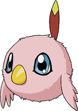 Poromon is Hawkmon's In-Training form. The name "Poromon" comes from the Japanese word "porori", meaning to drop something.