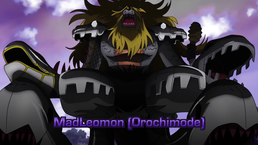 The next morning, the children part from the Digimon and make their way through the forest without an escort. Unfortunately, MadLeomon is marching toward the forest with his army so that he can attack the Village of Smiles. Seeing they are heading for trouble, Shoutmon hesitates to help due to his anger toward Mikey. MadLeomon then attacks the children and chases, ordering the release of a caged Orochimon to destroy the children.